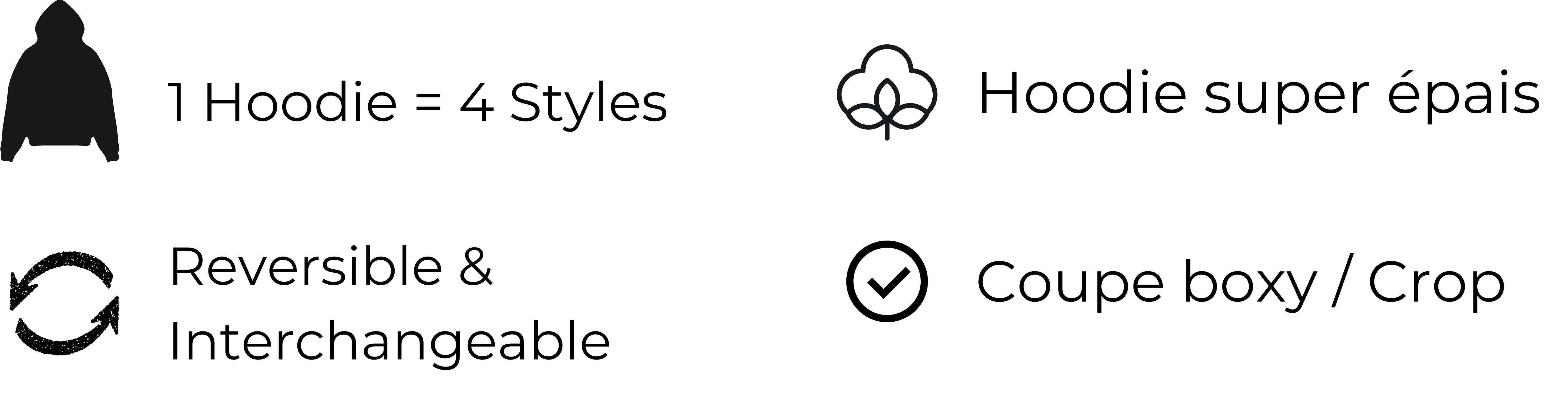 Hoodie réversible et interchangeable, adapté pour avoir 4 Style différents.